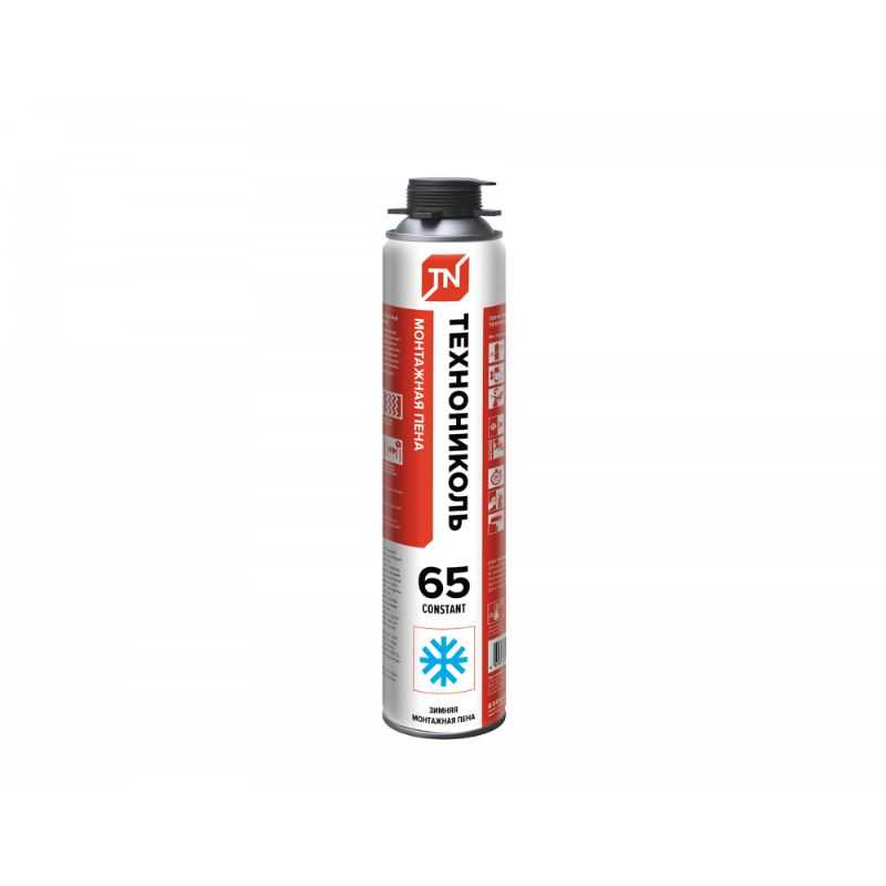 Пена монтажная профессиональная ТЕХНОНИКОЛЬ 65 CONSTANT применяется для герметизации, тепло — и шумоизоляции швов, щелей, пустот, монтажа деталей при выполнении строительных и отделочных работ.